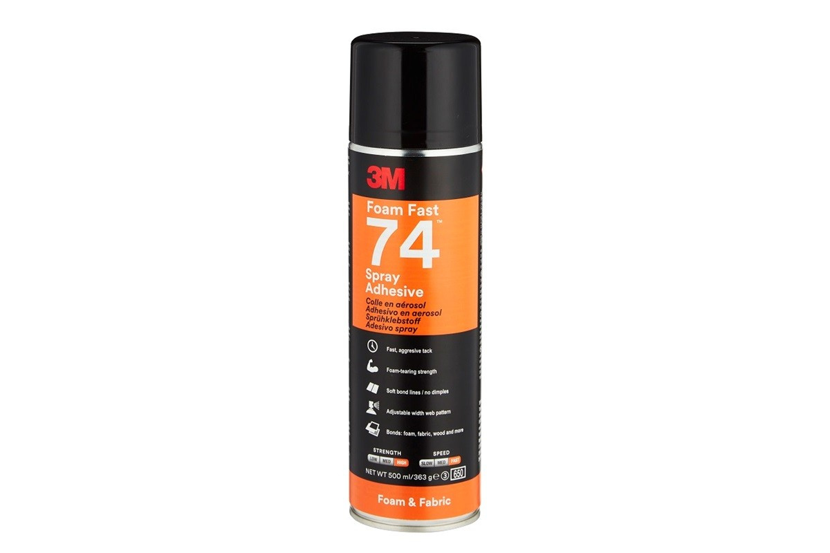Adezivul spray 3M Scotch-Weld 74 de înaltă calitate lipește spume poliuretanice sau latex flexibile între ele și de alte materiale (lemn, metal, plastic etc.).