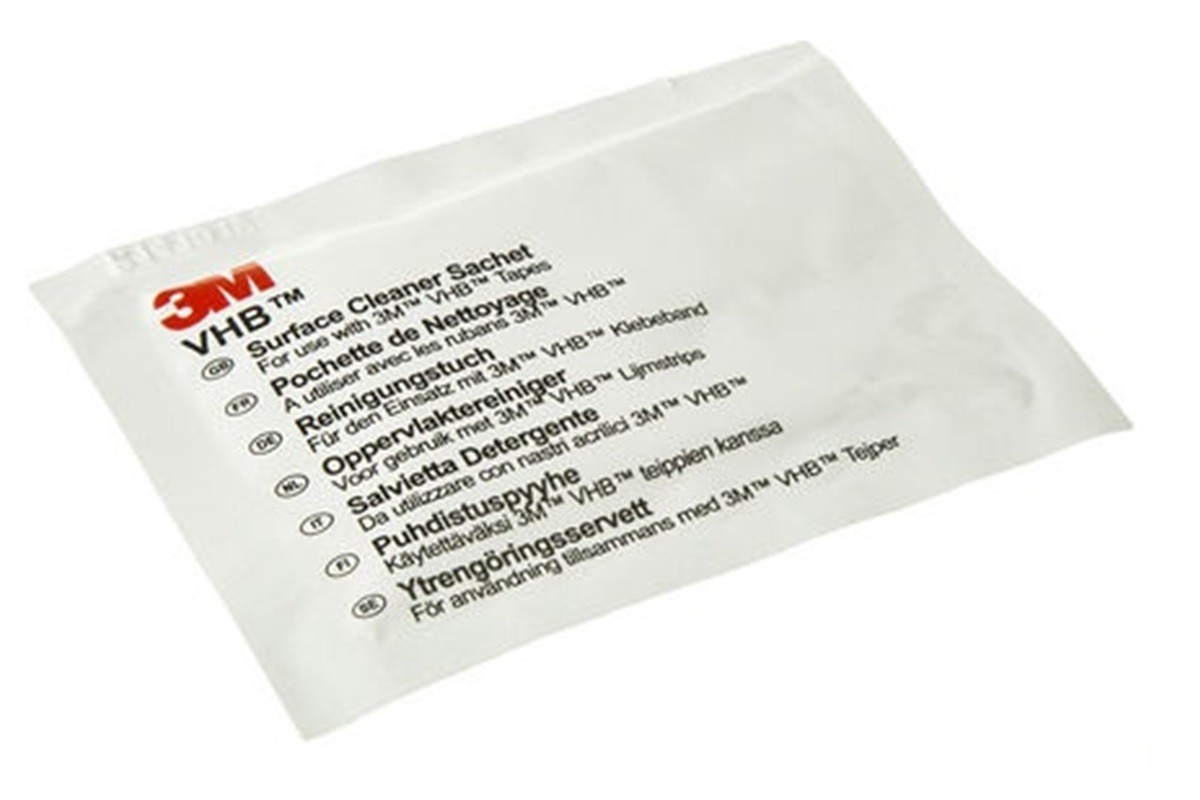 Șervețelul de curățare 3M VHB 1753 (3M VHB Surface Cleaner Sachet) cu dimensiunea de 145 x 145 mm este impregnat cu alcool izopropilic și apă demineralizată în proporție de 90 : 10. Este ideal pentru curățarea și degresarea suprafețelor înainte de lipire fie cu bandă, fie cu adeziv. Poate fi folosit pentru a curăța diferite suprafețe, de exemplu. metale, materiale plastice sau suprafețe lăcuite, însă este întotdeauna necesar să testați în prealabil soluția de curățare pe suprafață.