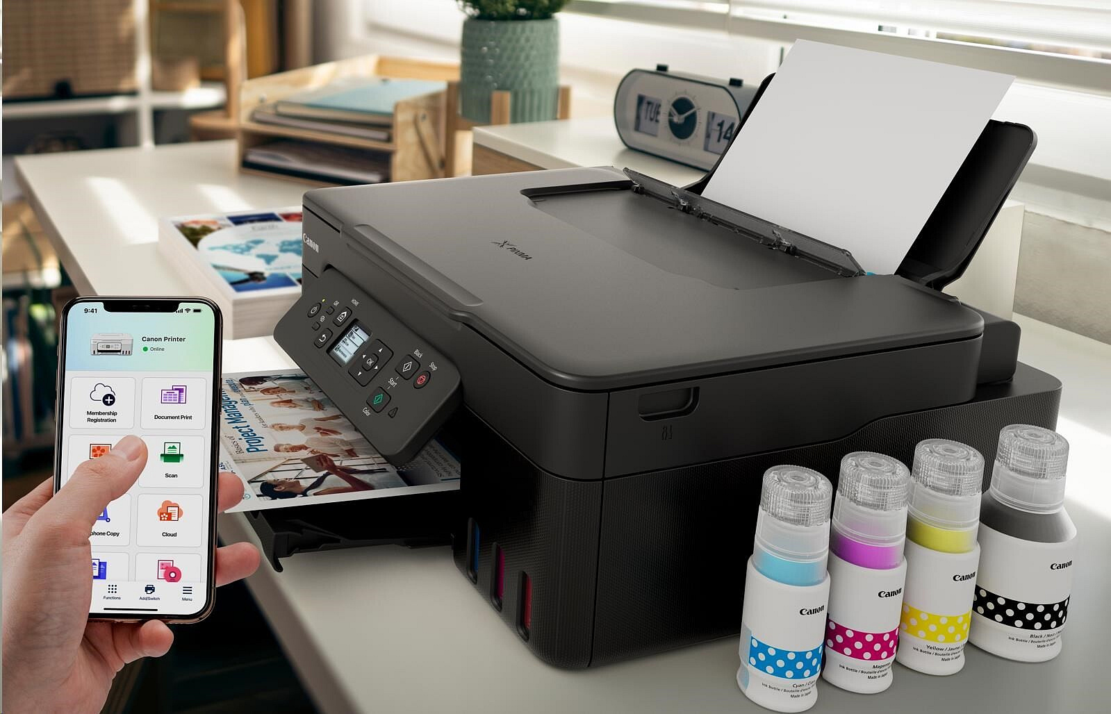 Datorită designului compact, este capabilă să copieze, să imprime și să scaneze și îndeplinește aproape toate sarcinile legate de documente