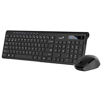 Bezdrátový set klávesnice a myši GENIUS Slimstar 8230 zvládne všechny každodenní úkoly ve firemní kanceláři nebo na home-office. Klávesnice podpoří rychlé a komfortní psaní i velmi náročných a dlouhých dokumentů. Za zmínku stojí také přítomnost multimediální kláves pro základní kontrolu hlasitosti zvuku nebo pozastavení přehrávání. Bezdrátová klávesnice Genius rovněž disponuje numerickým blokem pro zadávání číselných znaků. Bezdrátová myš Genius je vybavena optickým senzorem s rozlišením 1200 DPI, které umožňuje hladký a plynulý pohyb po pracovní ploše a tím přesné ovládání kurzoru. Bezdrátové připojení je realizováno skrze USB adaptér s 2,4GHz rozhraním a Bluetooth a umožní vám činnost až na třech zařízeních současně.