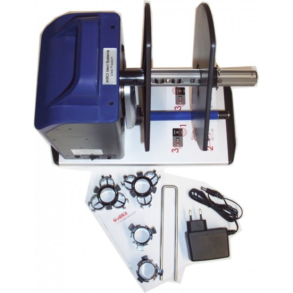 Motorul este alimentat de un adaptor de rețea extern, care este inclus în livrarea înfășurătorului de etichete. Bobinatorul are o construcție robustă. Aproape toate piesele sunt metalice, ceea ce asigură o durată lungă de viață și, în același timp, o bună stabilitate la locul de muncă.