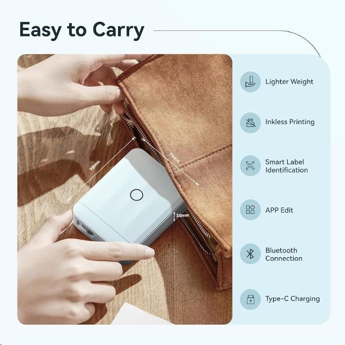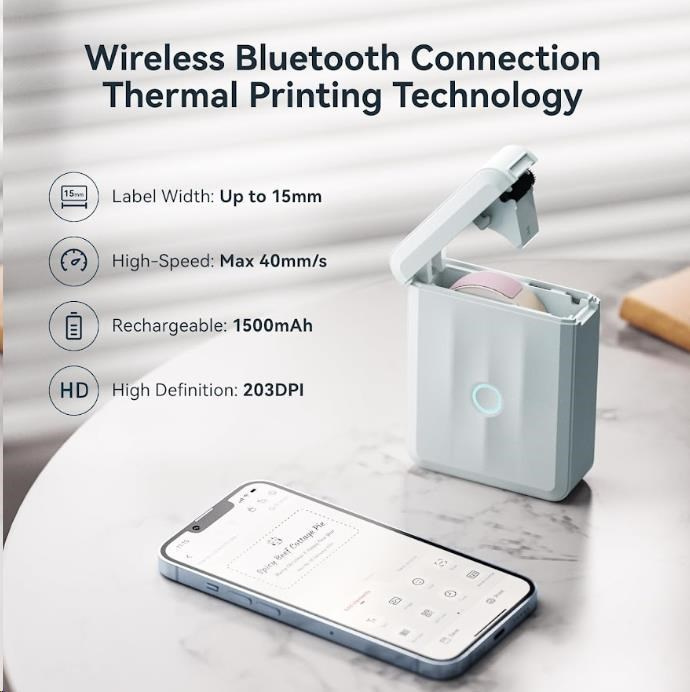 Datorită tehnologiei de imprimare termică, oferă o funcționare curată și fără întreținere, cu o calitate înaltă a ieșirii. Cu o rezoluție de 203 dpi și o lățime de imprimare de până la 12 mm, creează etichetă clare, lizibile și durabile. Aplicația Niimbot App, disponibilă pentru Android și iOS, permite proiectarea ușoară a etichetelor, inclusiv adăugarea de texte, pictograme, coduri QR, coduri de bare și rame.