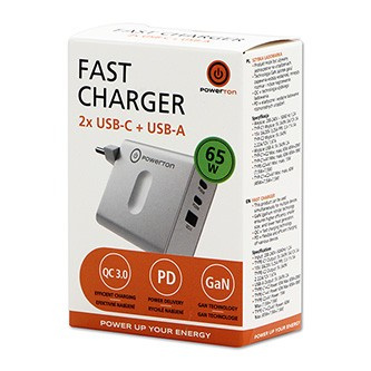 Powerton ENERGY VOLTIX adaptor 65W, 3 porturi, GaN, 2x USB-C, 1x USB-A, QC 3.0, PD