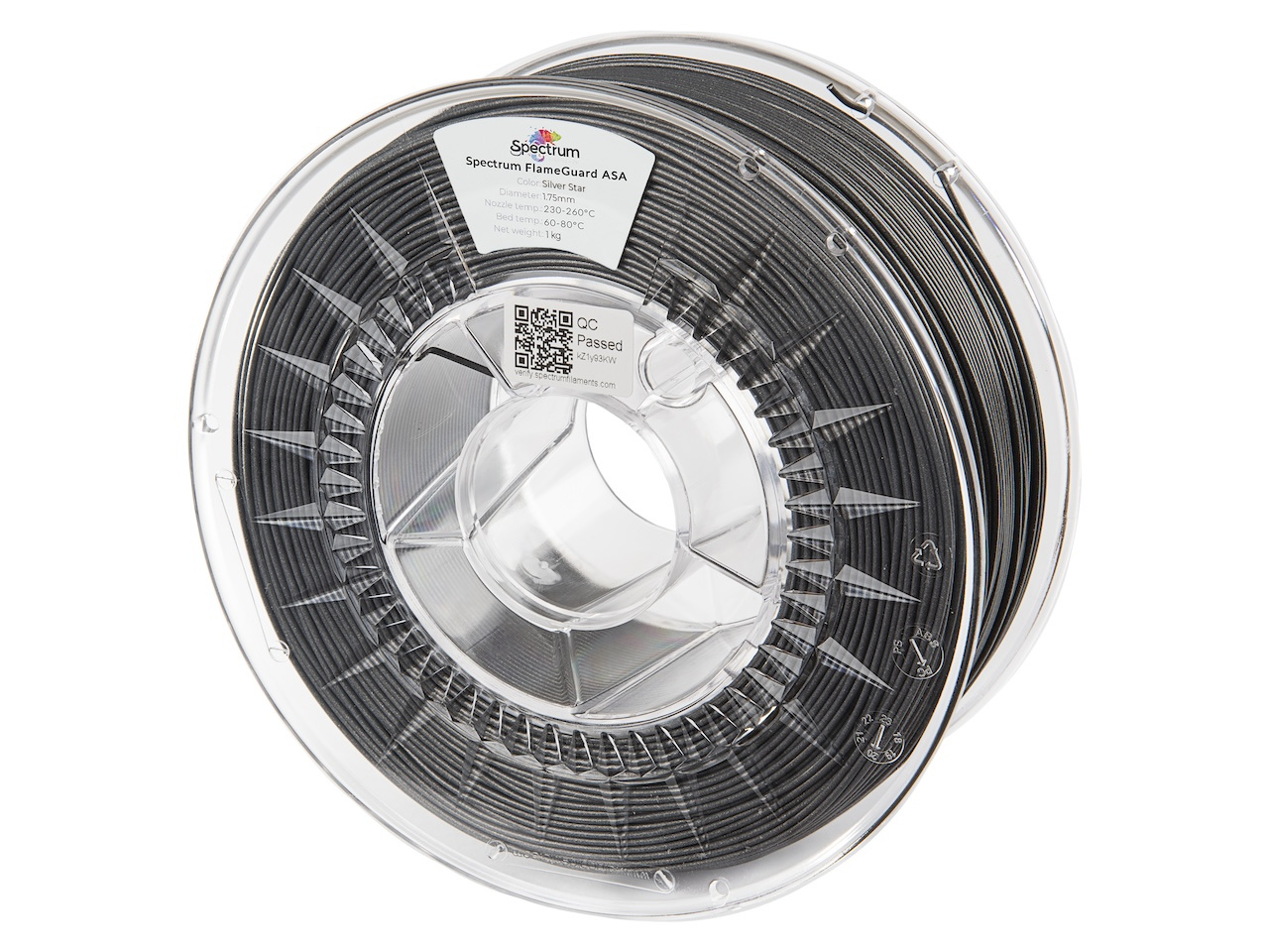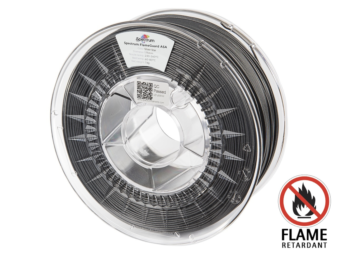 Filamentul Spectrum FlameGuard ASA 275 este un material avansat destinat utilizării în imprimantele 3D de birou. Versiunea FlameGuard se bazează pe formula dovedită ASA 275 și a fost special concepută pentru a îndeplini cerințele stricte de neinflamabilitate conform clasificării UL94 V0. Aceasta înseamnă că filamentul sau piesele imprimate cu acesta, dacă sunt supuse unui test de ardere în poziție verticală, se sting singure în 10 secunde, fără ca focul să se răspândească.
